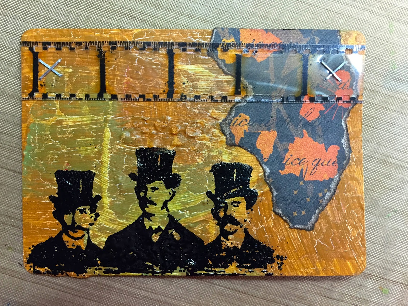 These look great Claudine. Love the copper lady. I am still with you, although a bit behind. I have a lot part finished. Must sit down and catch up a bit this week. Can't believe we are nearly there!! Don't know Elmer glue. Must be american. Might resort to texture paste, or maybe wood glue would work?? Improvisation makes it even more interesting. Hugz